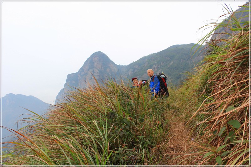 过了五虎岩寺就开始走一段正在修建的新石阶栈道,“天马行空,怎么喘气啦?”“领队啊!我比你大噢,不得不喘气”