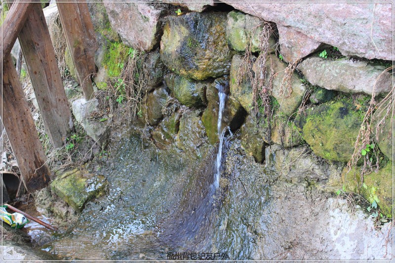 这是房子里面接出来的溪水,到房子门缝里可以看到,里面放着2个大水缸,水缸里的水满了就往这里流出来,我们就是接了这样的水开始烧水做饭的