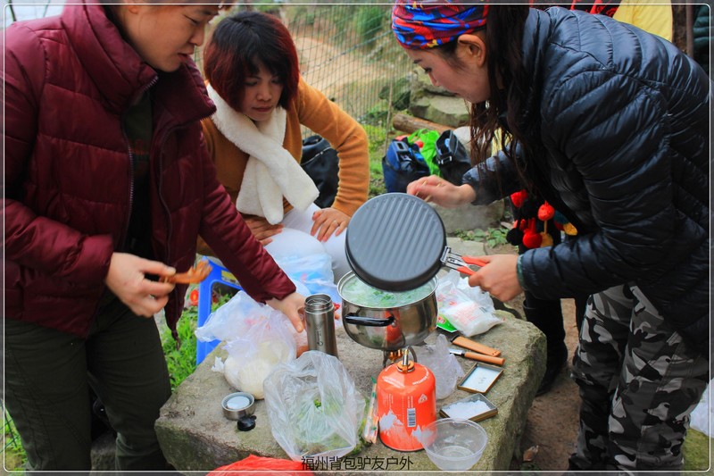 自从上去去了尤溪汤川我做了一次很简单的咸稀饭粥给她们吃后,她们就已经喜欢上吃了,出发前傻瓜猪和我说这次来五虎山一定要自己带食材出来煮,