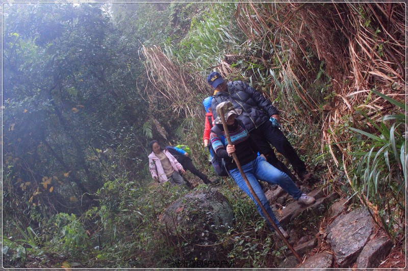 下山的路一样很难走,被雨洗刷过的石头尤其滑,不少队员都被滑倒几次,我走在最后,一直护送着这几个到山下,有时候甚至还要手牵着2个人走,路实在是太滑了