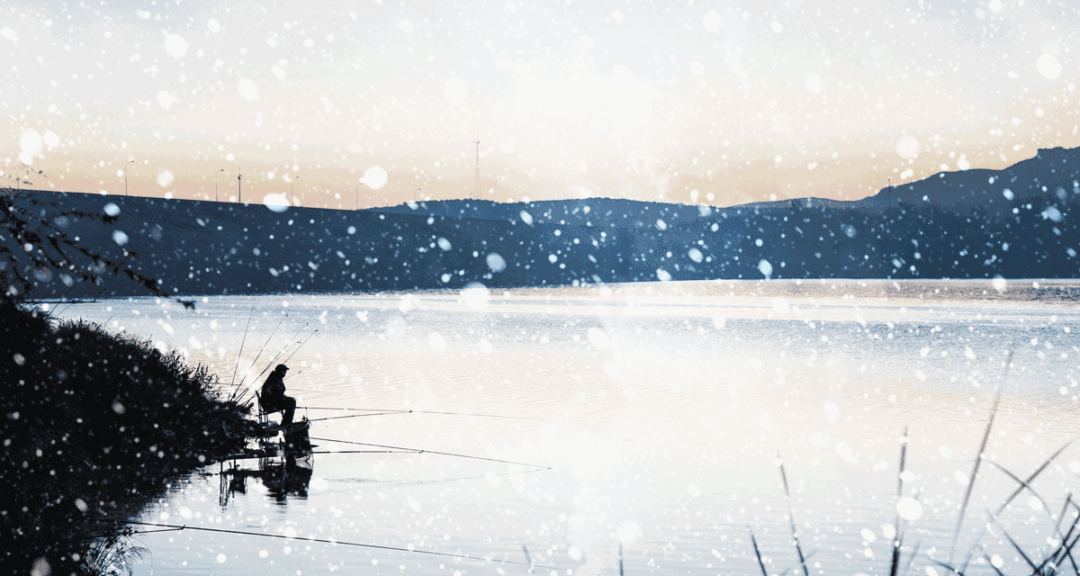 云层低压,雪飞舞着,寒潮摇曳在湖面上,湖水冰冻束缚了湖水波动。