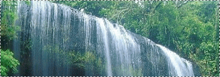 雾霭霁千山,飞瀑垂涎,落霞着染荡炊烟。