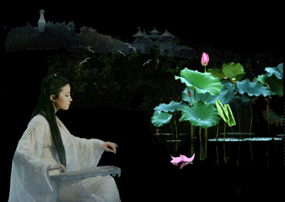 把自己禅远的心思寄托在漂流不定的云水之间,听着池边的语乐,还有那纤细干净的手指弹拨的琴弦,让人感到心牵。