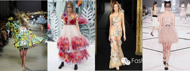 花朵是时尚圈里永不过时的元素,但这一季的高级定制在于运用小型立体花朵/大型平面印花或刺绣,营造出或仙气逼人的婉约或灵秀可人的清新。