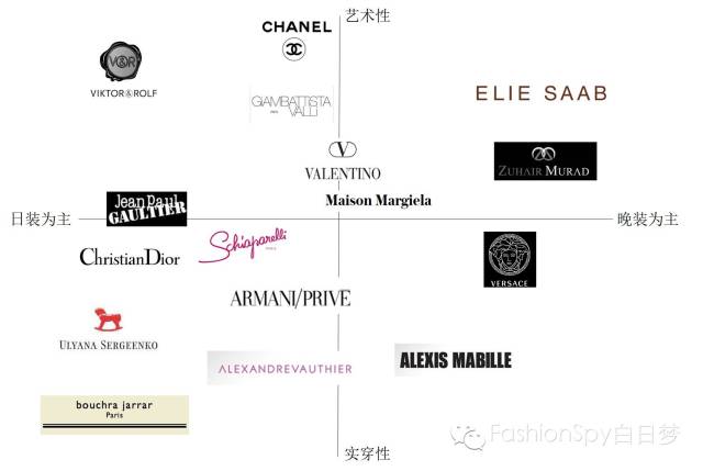 如果我们把主要的这些时装屋放在这样一个象限里,他们是这样的: