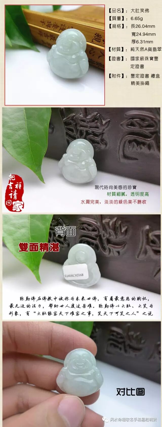 复制这条信息,打开..手机淘宝..即可看到【林明贤旺我宝吉祥物 翡翠A货女款笑佛 带证书 佑平安 特殊加持】¥8CIJ5mZBhH¥
