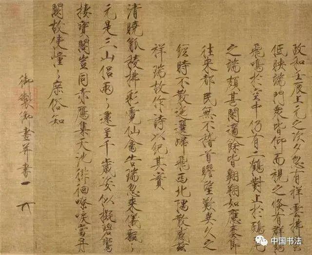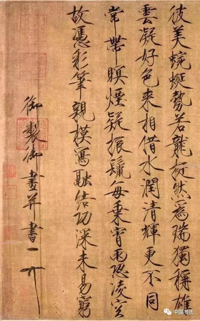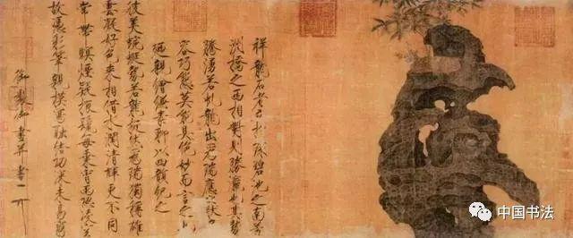 宋徽宗《祥龙石图》,楷书, 绢本,设色 ,后期风格, 北京故宫博物院藏。