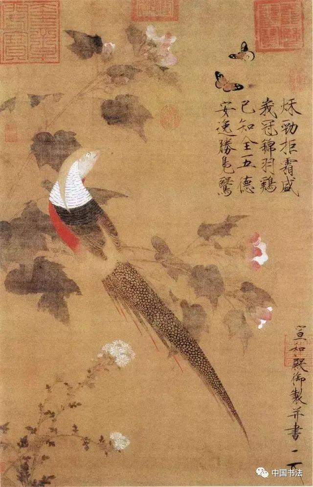 《芙蓉锦鸡图》(传)北宋徽宗赵佶绘,楷书,轴,绢本,设色,北京故宫博物院藏