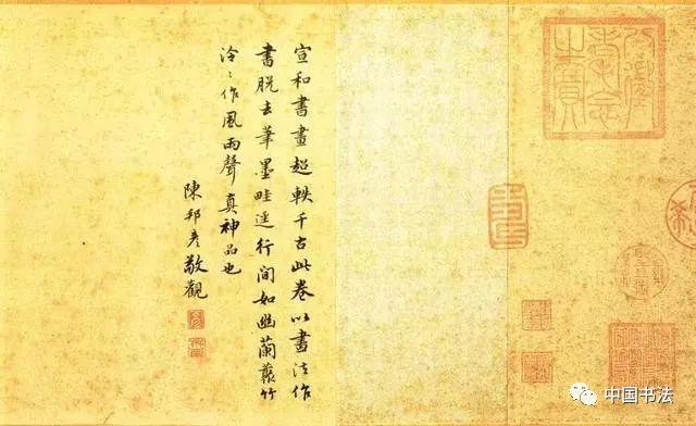 宋徽宗《蜡梅山禽轴》,楷书,绢本 ,轴, 后期风格, 台北故宫博物院藏。