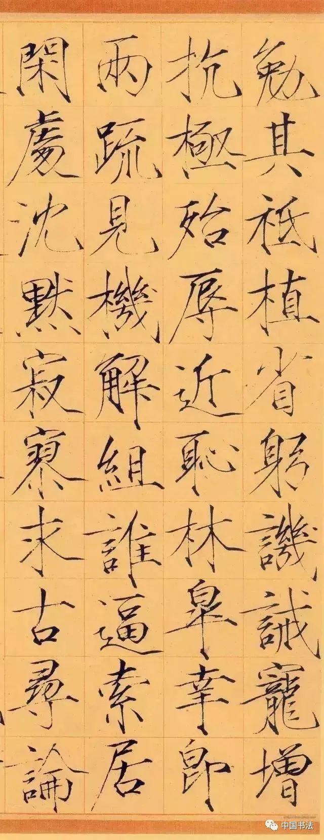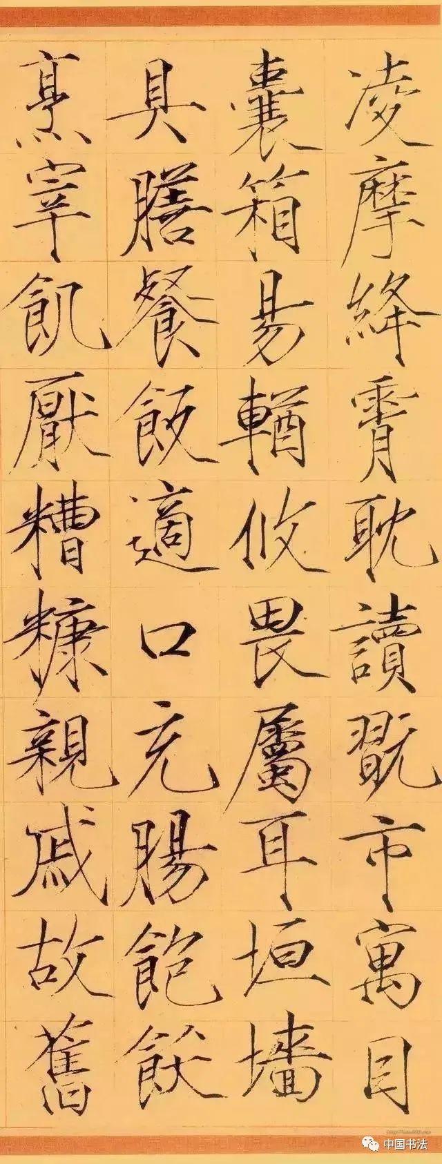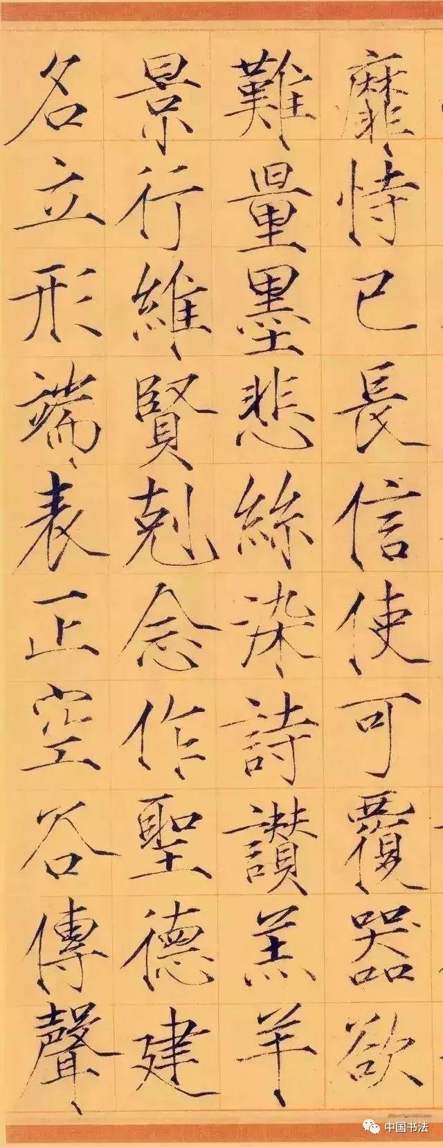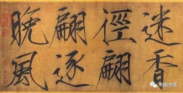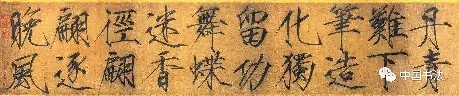 宋徽宗《秾芳诗帖》大字楷书,每行二字,共20行。这是赵佶瘦金体的代表之作。清代陈邦彦曾跋赵佶瘦金书《秾芳诗帖》:“此卷以画法作书,脱去笔墨畦径,行间如幽兰丛竹,泠泠作风雨声。”既是对这一诗帖的评赞,也是对“瘦金书”的艺术效果的很好概括。