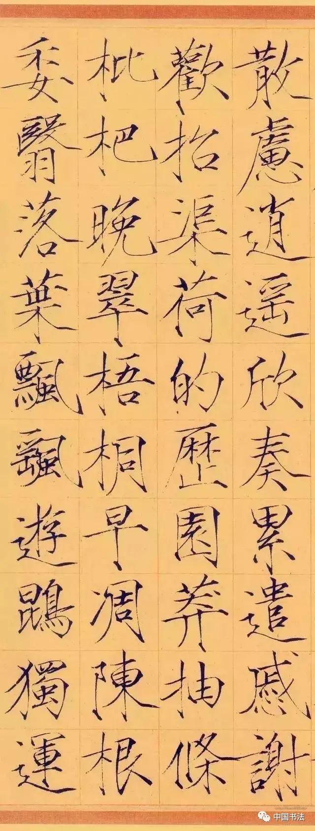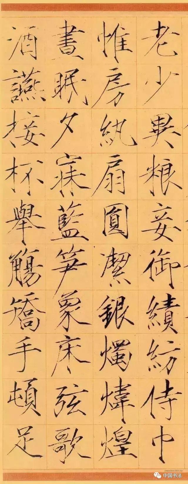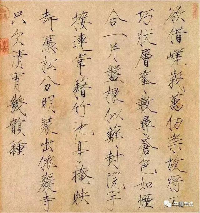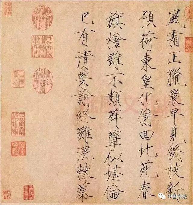 《夏日诗帖》是书于政和年间,经典瘦金名帖代表作,流传九百余年,至今保存完好,现珍藏于故宫博物院。是瘦金小楷的一块玲珑剔透光芒四射的完璧!古人评论瘦金体云:“横画收笔带钩,竖画收笔带点,撇如匕首,捺如切刀,竖钩细长而内敛,连笔飞动而干脆”,是对瘦金书特色的高度概括。又有赞云:瘦金书“金镂之妙,细比毫发,殆与神工鬼能,较奇逞并于秋毫间。”对瘦金体书法的高度艺术成就推崇备至。上述特点在此贴中可谓体现的淋漓尽致,毫无遗憾可言。
