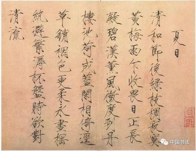 宋徽宗《夏日诗帖》,楷书,纸本,后期风格,北京故宫博物院藏。