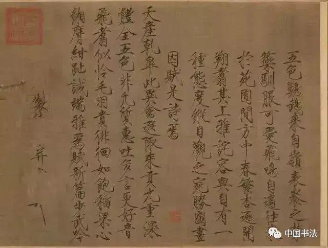 宋徽宗《五色鹦鹉图》绢本,卷,楷书,后期风格,美国波士顿艺术博物馆藏。