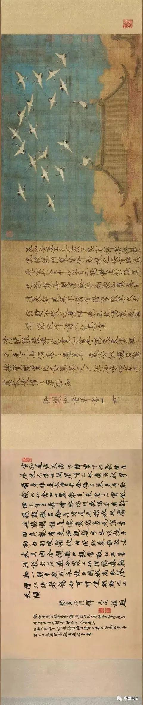 宋徽宗《瑞鹤图》绢本,卷,楷书,后期风格,辽宁省博物馆藏。