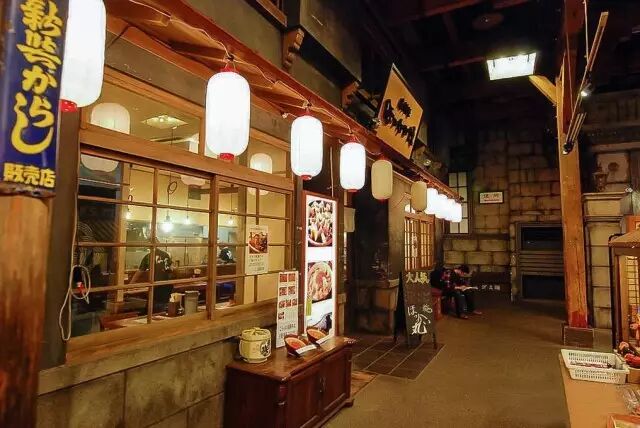 坐落在运河河畔由旧仓库改造成的餐厅区,内部装潢成昭和年间的街道风格,砖墙、煤气灯、木屋顶使得餐厅充满了复古怀旧的气息。