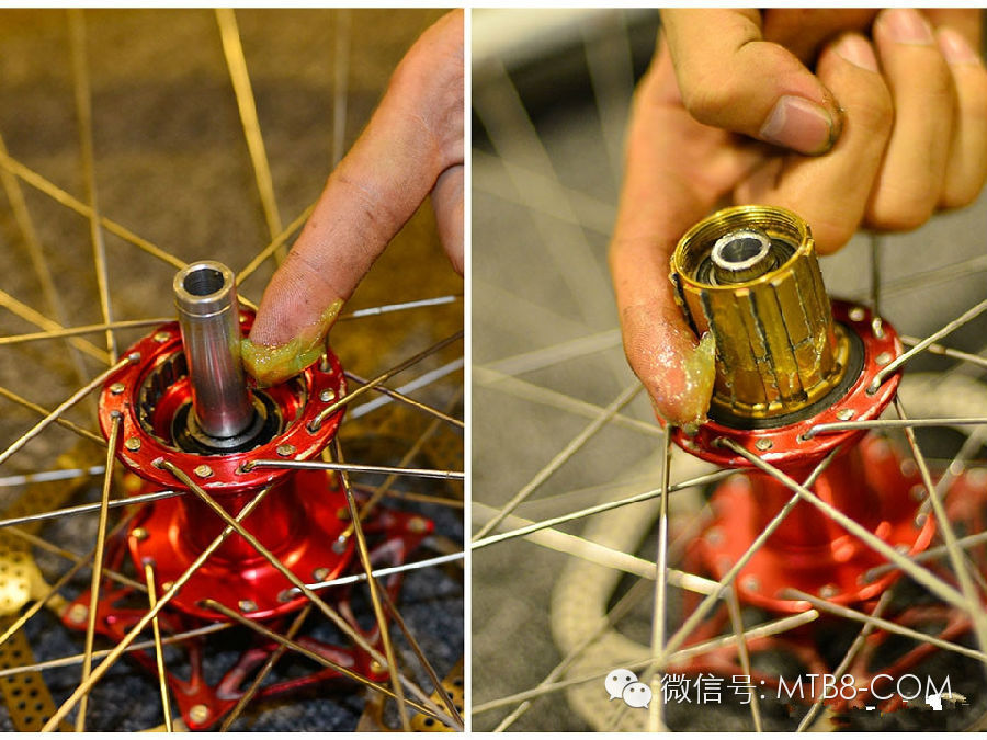 清理完毕后不要忘记在逆棘器上涂抹适量的润滑脂作为润滑,铝合金塔基表面也要涂上一些润滑脂,防止飞轮与塔基“咬死”的情况,之后就按照拆卸的顺序安装回去就保养完毕了。