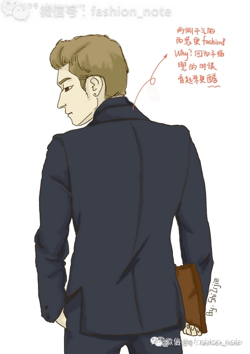7.后面两侧开的西装更时髦,为什么?一个理由足够了,手插兜里的时候看起来会更酷.