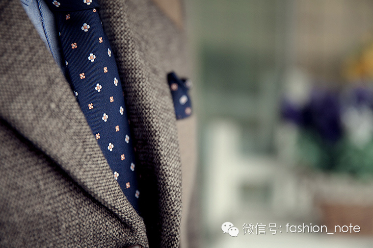 在搭配一套非常正式的全套衣服时,应先从套装及衬衫中找出占比重最大的颜色,或者最令人瞩目的颜色来确定领带的选择,然后再以领带的色彩决定口袋巾的颜色,这个顺序可以保证整体的和谐性。