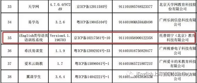 2019年6月1日-6月20日申报审查)公布内容中,iEnglish类母语英语学习训练系统正式通过审核,成为广东省首批通过审核的产品。