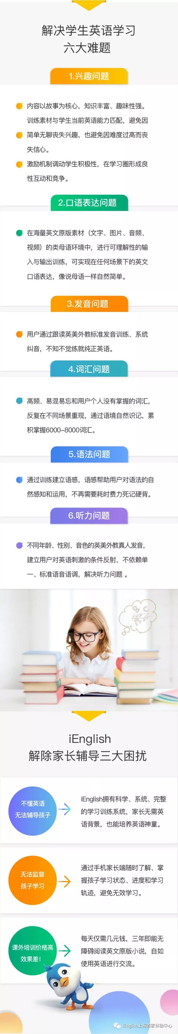 碎片化和海量系统化的区别。只适合小学一二年级低年龄段的,点读的弊端是没有过程性监控。iEnglish是一套跟教材完全结合的精读+原版书泛读的课程体系,为每个孩子量身打造的一套自适应的听读和跟读系统。