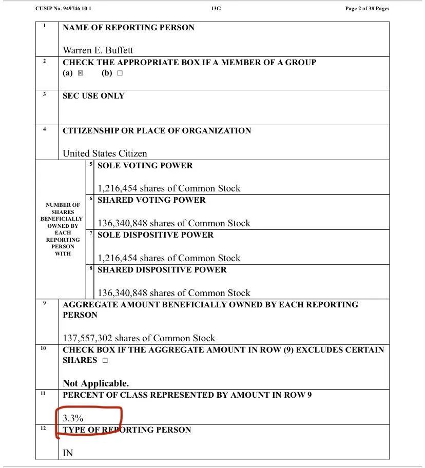 值得注意的是,目前伯克希尔对富国银行的持仓已经下降到5%以下,将无需再公告对富国银行的直接持股情况。