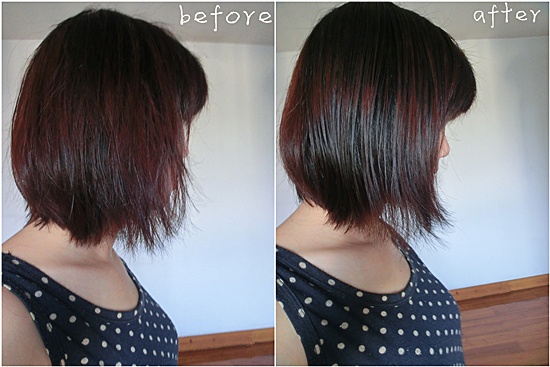 待到头发八成干了,再看看发丝的光泽吧,真是够闪亮的,之前的毛躁感踪迹全无,