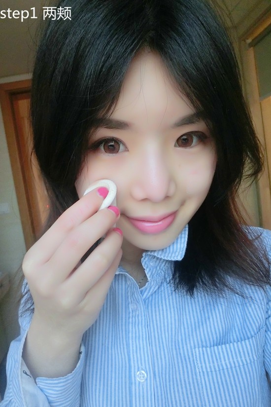 我在介绍一下使用方法,在涂抹过护肤品乳液面霜之后,先用棉扑取适量BB棒涂抹在两边脸颊
