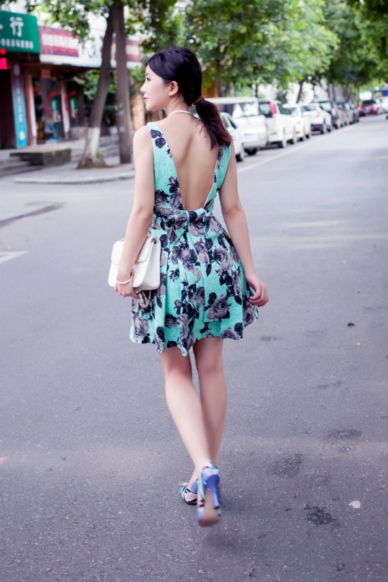 后面的大露背,很性感,很透气啊。