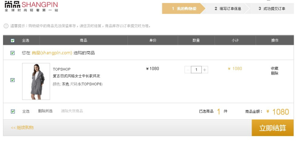 接着我好好的逛了逛,礼服还有点犹豫不决,因为之后还会上新,而我的婚期还有那么一段时间,所以也不着急,但我倒是看中了一件大衣,HO~看起来还蛮赞的样子,索性就放到购物车里付款了。