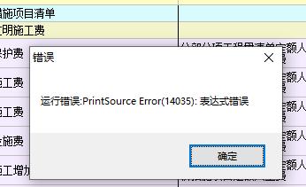 小伙伴有时候在导出报表,或者预览单位工程汇总表提示运行错误PrintSource Error(XXXXX):表达式错误?