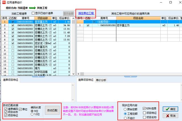 选择应用组价到其他工程清单,右上方选择指定需要组价到的单位工程,左下方勾选自动组价的匹配依据勾选后点自动匹配,然后勾选需要同步的内容,确定即可。