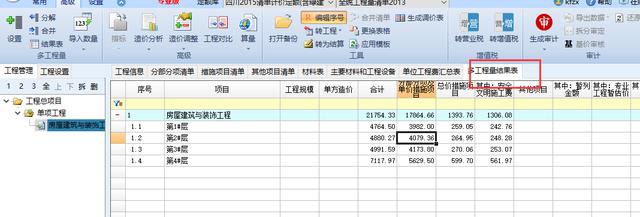 对于大型群楼工程,其大多数的单位工程项目具有清单相近、相似的特点,采用多工程量功能,可以便捷的对工程项目进行统一设置,在一个界面中实现多个单位工程同时组价,避免了重复操作的过程,极大的节省了完成工程时间。可以采用软件里面的多工程量功能。