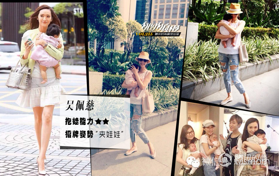 正所谓“一娃在手,时尚我有”,这几年一大波星宝贝纷纷降生,让晋升辣妈的明星们不再拿美貌和名包当抢镜利器,而是把自家萌娃当做了最佳的“时尚道具”。自从有了小七,贝嫂出街连最爱的爱马仕都不用了;可儿与儿子小开花一起出镜,简直让街拍摄影师集体都疯了!最近,连台湾的新晋辣妈吴佩慈也忍不住过了把“时尚抱”的瘾,不过由于姿势太不专业而惨遭吐槽。所以,抱娃出街是门技术活,娃抱得好的此间高手,那看上去才叫时髦。