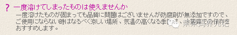 即便是放在高温的地方融化了再凝固以后它的品质也是没有问题的。因为本品是不含防腐剂、无添加的产品,因此还是建议放在阴凉的地方,夏天气温高的时候建议放在冰箱冷藏。