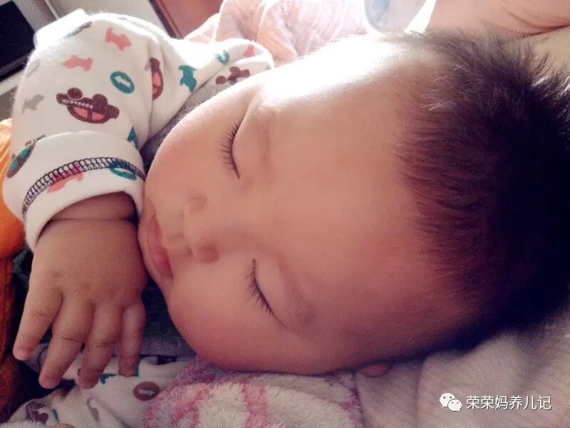 图为八个月大的大荣,别看的睡着时的样子像个小天使,他半夜嚎叫的时候可是我的噩梦。现在想想,大荣睡觉问题频发那段时间恰恰是我有意识的给他延长夜奶时间的那个期间。