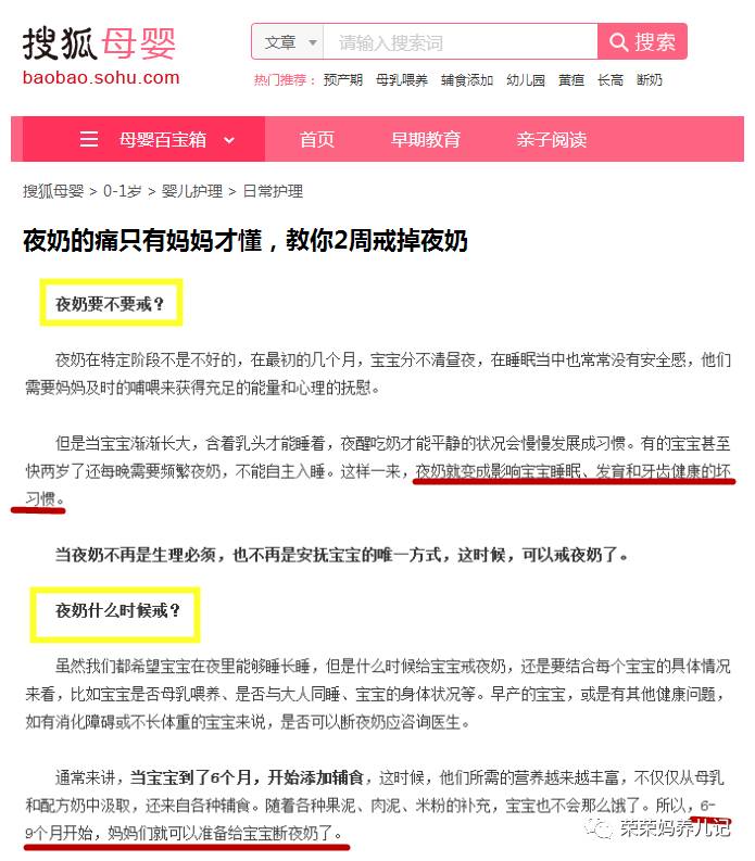 而另外一篇则持完全相反的观点,认为夜奶会影响睡眠,长期夜奶会琳令宝宝养成不好的睡眠习惯,频繁夜奶也会引发龋齿,建议半岁以后就可以着手戒掉夜奶。