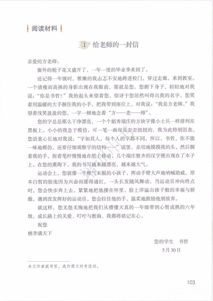 部编版小学六年级语文六年级下册电子课本小学语文电子课本扬帆远航班杨老师教育工作室 |