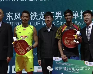 21比19,斯里坎特险胜第一局。接下来的第二局,两人一直紧咬比分,从一平一直打到14平。之后,林丹体能似乎出现问题,逐渐跟不上斯里坎特的节奏。尽管挽救了一个赛点,但斯里坎特还是21比17再胜一局,第一次获得首要超级赛的冠军。世界羽联从2011年开始推行首要超级赛,而中国公开赛为该系列赛的一站。而斯里坎特的夺冠,也让林丹失去中国公开赛上第六次问鼎的机会。
