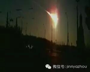 2013年2月15日,俄罗斯车里雅宾斯克州遭遇陨石侵袭。从画面中可以看到,陨石坠落时一道闪光伴随巨大的爆炸声划过天际,并在空中留下极长的白烟。