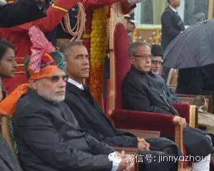 坐在防弹玻璃后的奥巴马时而凝神观看阅兵,时而与身边的莫迪交谈,就像前一天一样,两人不遗余力地展示美印关系进入新阶段的情境。