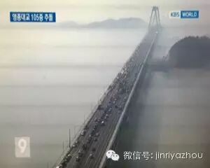 据韩国KBS电视台报道,在永宗大桥上1.3公里的路段、先后有105辆车相撞,致使2人身亡、包括19名外国游客在内的65人受伤。