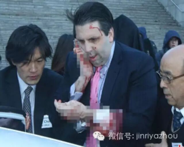 【CCTV-4今日亚洲】继续来关注美国驻韩国大使遭袭事件。据韩国媒体披露,犯罪嫌疑人手持的水果刀,仅差一厘米就会伤到颈动脉,险些要了大使的性命。