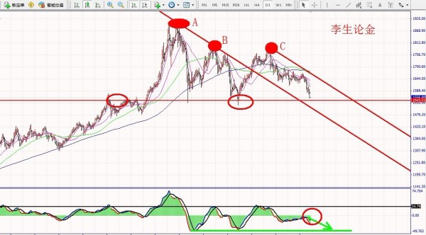 金评:今日金价开盘1557美元,昨日金价走势与我们金评中的分析完全一致,全天以逢高做空为主,这就是我们经常与投资者提及的“顺势”何为顺势,就是不盲目猜顶言底,下跌的行情等下跌5浪或底部形成2次筑底或者W底的时候再考虑进场多单,没有人能够抓住最低部,偶尔的一次抓底不能成为我们衡量抄底的理由和标杆,今天行情从日线上来看,金价在经历了上周的大幅下跌之后没有刹车的迹象,反而出现了加大下滑的趋势,目前金价始终徘徊在布林带下轨下方,布林带也出现了较大程度的张口迹象,短期来看如果金价始终无法站上布林带下轨那么可能会有进一步的下探过程。日线延5日均线一路下探,空头目前非常强势,在附图指标上,MACD依然保持着死叉运行,而且量能和死叉配合完美,丝毫没有掉头的迹象,投资者需密切关注短期可能会出现的修复技术指标的反弹行情。下方重点关注前期低点1535和1522美元。从四小时图上看,金价目前虽站稳布林带下轨,下轨也形成了白天下方第一道支撑,布林带依然保持向下开口之势,昨天白天的缩口并未阻止金价继续下跌。本人认为当前迷途的欧元区局势造就了这种跌跌不休的态势。金价目前点位已经远离主要均线的支撑,附图指标上,MACD再次由阳转阴,而且在低位形成小幅死叉,如果金价在白天下破布林带下轨那么可能继续下跌之势,综合来看,昨日再度出现快速下跌,日线收取大阴柱,今日还有回踩昨日低点甚至刷新低点的惯性下跌需求,亚欧盘预计有一波反弹,但本人认为反弹力度不会太强,上方重点关注1565和1572,全天继续以逢高做空为主,但从1小时图来分析,亚欧盘主要以震荡为主,等待1小时布林带收口再作方向性的选择。具体建议李生将中金博客即时播报!