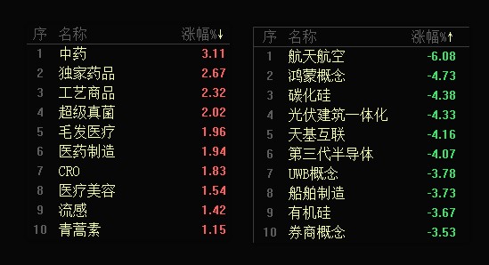 到收盘时止,中药、工艺商品、医疗美容、白酒、银行等板块领涨;军工、鸿蒙概念、光伏建筑一体化、第三代半导体、券商等板块领跌。上证总成交量2.92亿手(量能相比上一个交易日明显放大),上证总成交额4506.39亿元,大盘下跌了2.42点,跌幅0.07%,报收3588.78点。两市涨幅在9.0%以上的股票有72只;跌幅在9.0%以上的股票有44只,两市炸板率在25%左右。这说明了今天市场从一开始就表现得相对谨慎,然后两市大跌的股票数量就逐步增多起来了,形成了市场上多空情绪的分化现象。