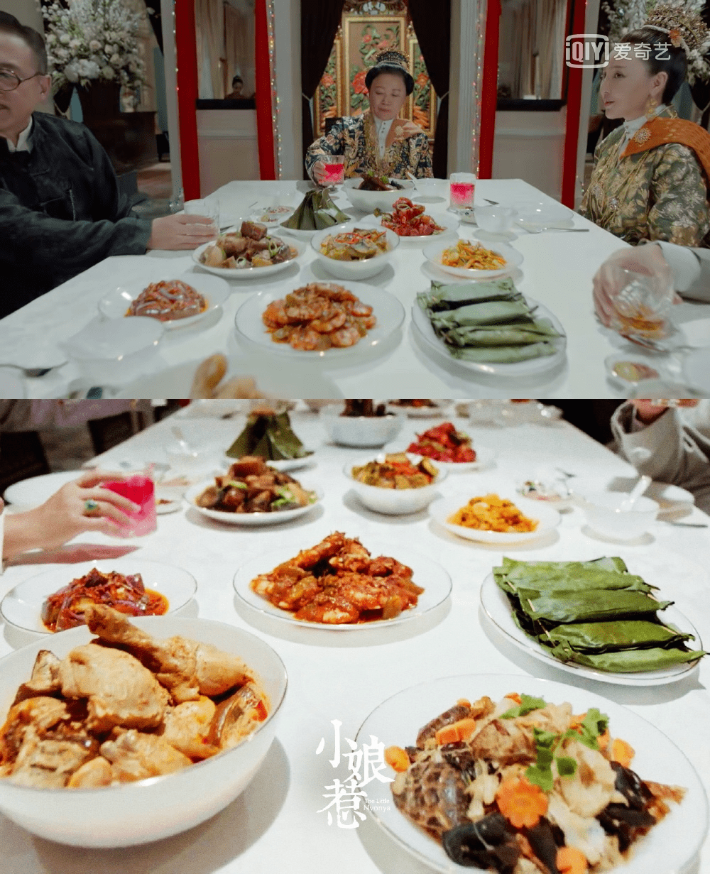 在《小娘惹》中,剧集开始就以黄家设长桌宴拉开序幕,各种各样的娘惹食物:如龙眼茶、虾米糯米卷、豆腐汤、叻(lè)沙汤面、娘惹粽、九层糕等特写镜头的接连出现,也拉近了观众对娘惹食物的了解。