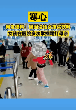 前不久,陕西宝鸡一个女孩,因妈妈没给自己买饮料,就当众对着妈妈拳打脚踢,不停说“打死你”。