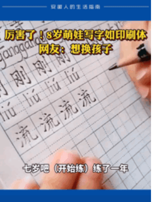 之前济宁一位8岁女孩书写印刷体的视频火遍全网。