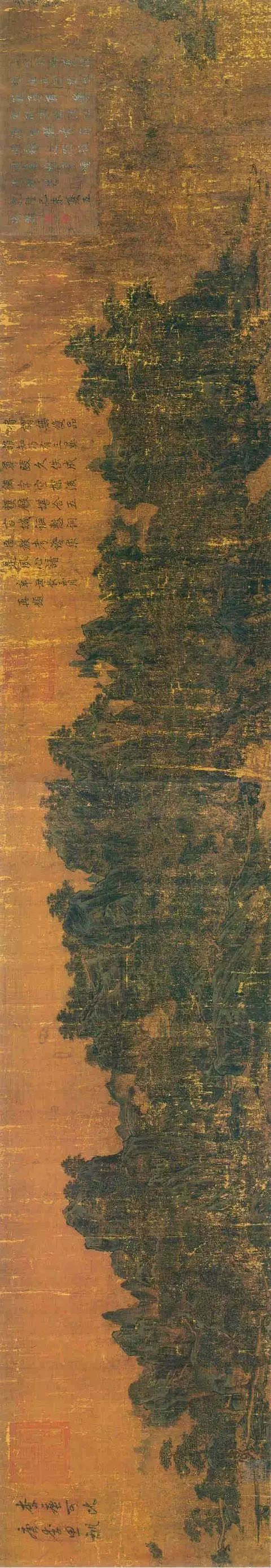 李唐的《万壑松风图》为绢本设色,纵188.7厘米,横139.8厘米,现藏于台北故宫博物院。