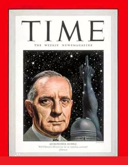 随后,哈勃发现那些河外星系远离我们的速度也是随距离而成比例增大的,这意味着宇宙处于膨胀中。这项发现当时就令爱因斯坦震惊,因为宇宙膨胀意味着爱因斯坦的宇宙学常数变成了画蛇添足。爱因斯坦得知哈勃的发现后,立即应邀前往美国,登上威尔逊山,在哈勃的陪同下,亲自使用胡克望远镜进行了一番观测。当代最伟大的宇宙学家霍金认为,哈勃对宇宙膨胀的发现无愧于20世纪一项伟大的理性革命。