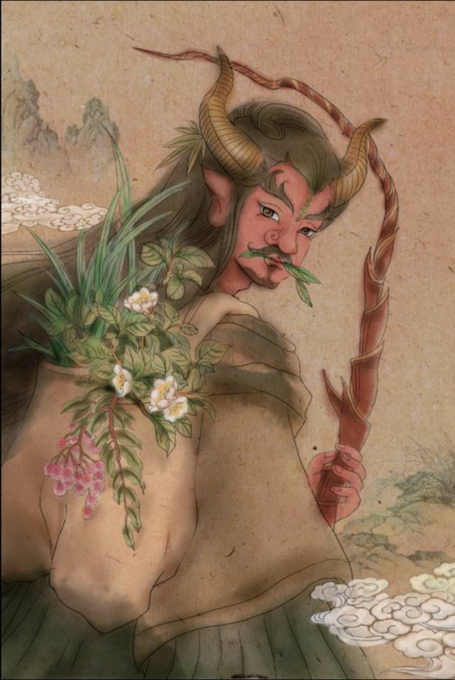 《补史记·三皇本纪》:“神农氏……人身牛首。”神农氏是农耕文明的开创者,“农耕”又是和“牛耕”相通的,在原始先民的心目中,牛是勤劳和善良的象征,所以任劳任怨的神农氏自然就长出了一个牛头。